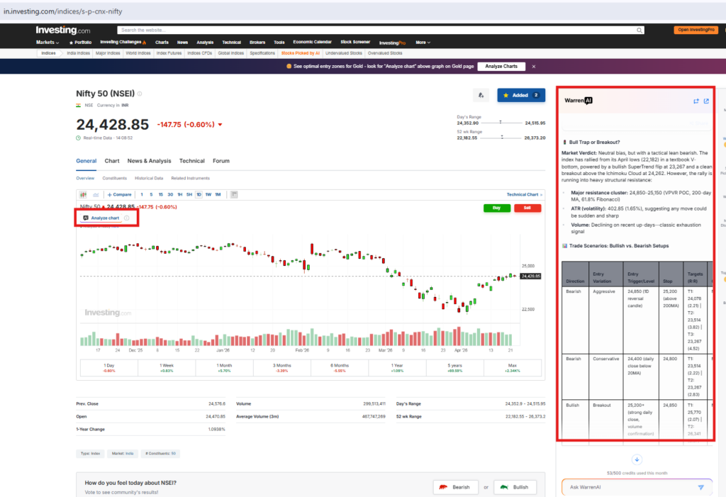 With its AI-powered tools, such as “AI Chart Analysis”, you can: