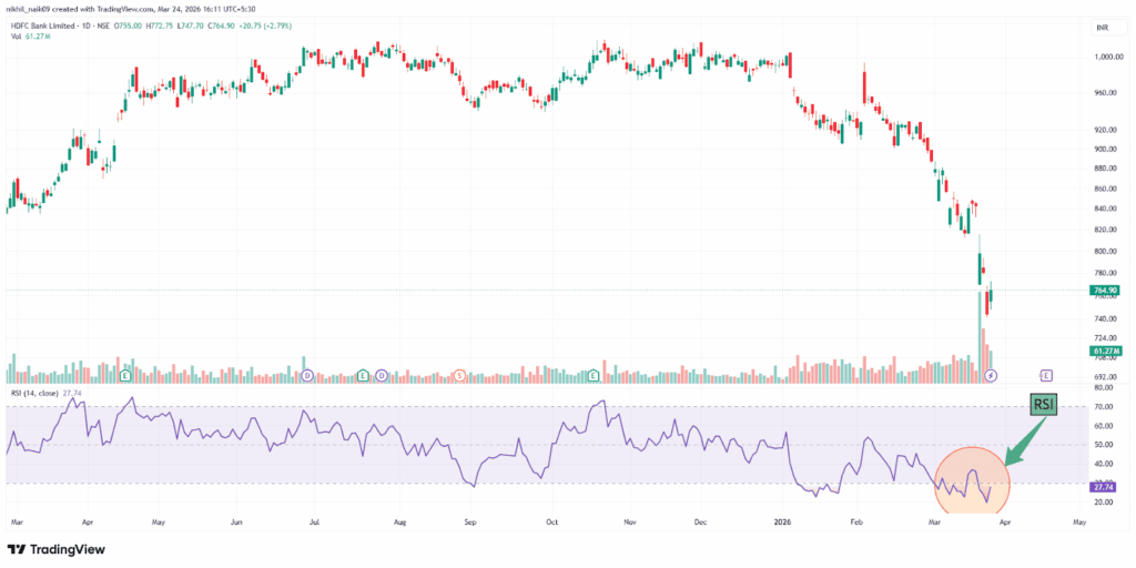 With a market capitalization of Rs. 11,77,717.55 crores on Tuesday, the stock closed at Rs. 765.15, with an RSI of 27.74, indicating that it is in the oversold zone, offering the potential for an upside bounce.