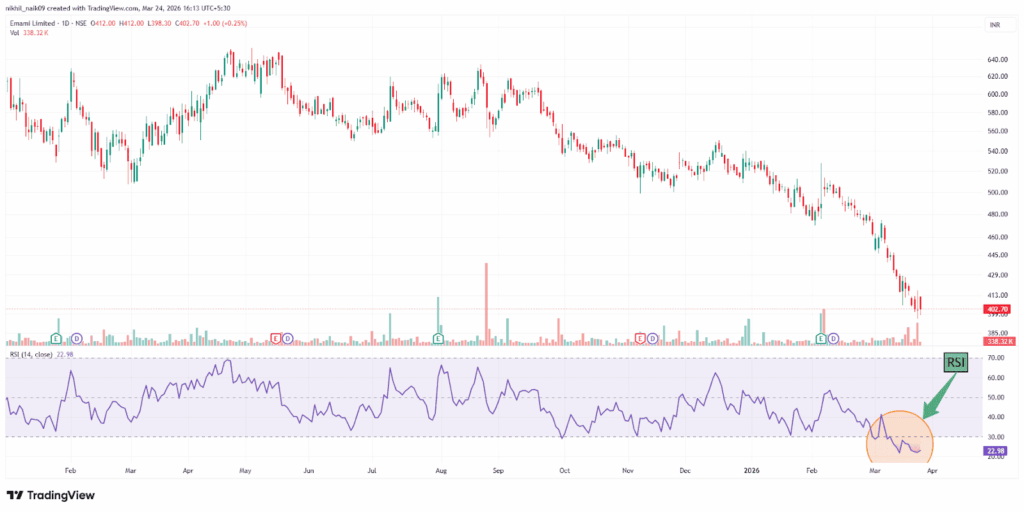 With a market capitalization of Rs. 17,644.43 crores on Tuesday, the stock closed at Rs. 401.85, with an RSI of 22.98, indicating that it is in the oversold zone, offering the potential for an upside bounce.