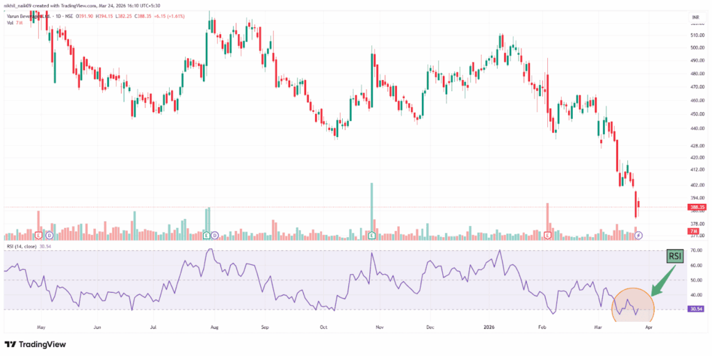 Synopsis: Varun Beverages, Amara Raja Energy, Dabur India, TBO Tek, Emami, and HDFC Bank are Nifty 500 stocks currently trading below RSI 30, indicating oversold conditions and potential short-term rebound opportunities. The Relative Strength Index (RSI) is a popular momentum indicator used by traders to measure the speed and strength of a stock’s price movements. […] The post VBL and 5 other stocks that are currently trading in oversold zone with RSI less than 30 to keep an eye on appeared first on Trade Brains.